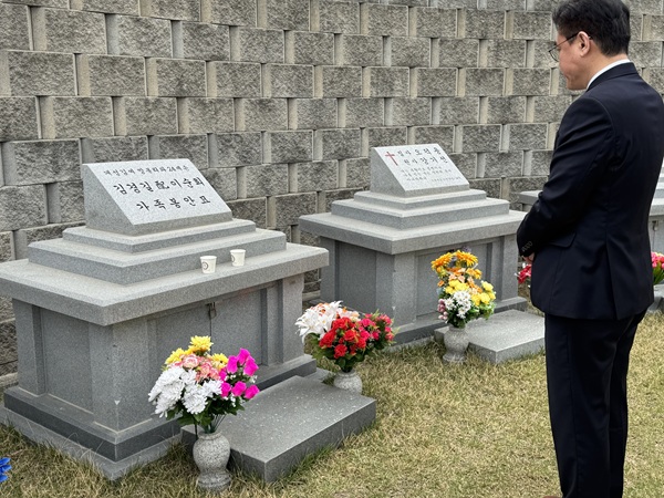 김 후보는 확정 소식을 접한 직후 가장 먼저 부친(故 김경길)을 비롯한 부모님 묘소를 찾아 조용히 참배했다.