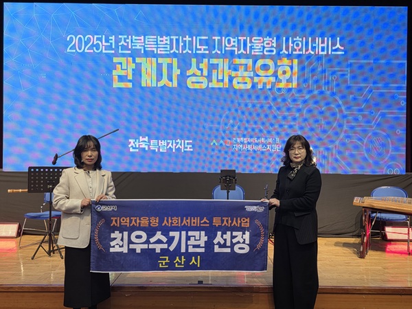 군산시가 17일 전북자치도 주관 ‘2025 지역자율형 사회서비스 투자사업 시·군 성과평가’에서 최우수상을 수상했다.