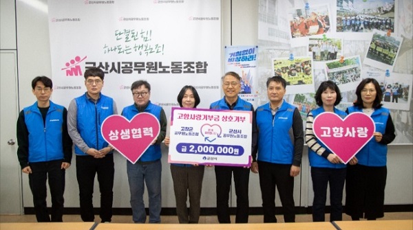 군산시와 고창군 공무원노동조합은 고향사랑기부제 활성화와 지역 간 상생협력을 위해 고향사랑기부금 200만원을 상호 기부했다.
