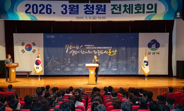 이어 “군산시를 지탱하는 힘은 여기 모인 공직자 여러분에게 있다”며 “전 직원이 ‘원팀’이 돼 흔들림 없이 시정에 매진할 것”을 당부했다.
