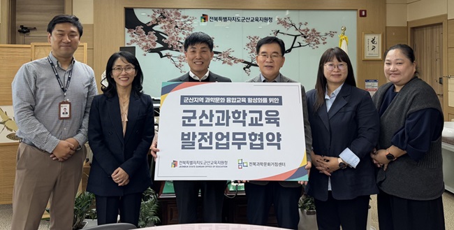 군산교육지원청(교육장 이성기)과 군산대가 운영중인 전북과학문화거점센터(센터장 유수창)가 군산과학교육 발전을 위해 손을 잡았다.