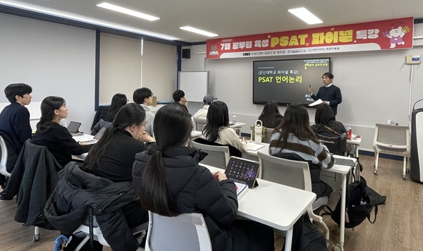 이번 특강은 7급 공무원 시험 핵심 관문인 공직적격성평가(PSAT) 대비를 위해 언어논리·자료 해석·상황판단 과목을 중심으로 이론과 실전 문제 풀이를 병행한 집중 과정으로 구성됐다.