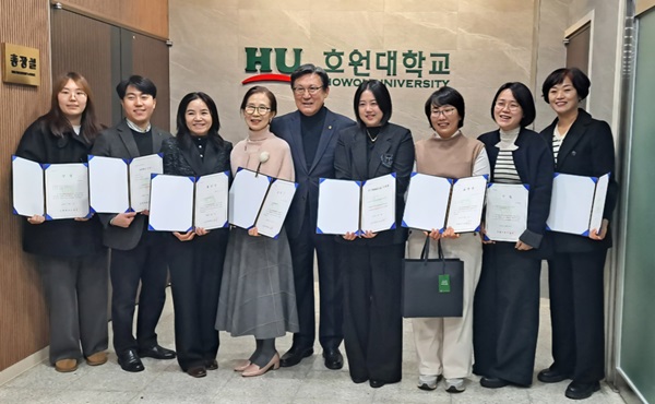 호원대 교무·혁신처 교육혁신원은 11일 총장실에서 대학혁신지원사업 일환인 ‘2025 HU 교육 인증제’ 우수성과 시상식을 개최했다.