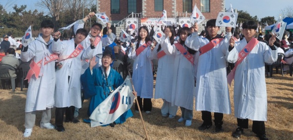 행렬에 동참한 군산영광중 학생들은 태극기를 들고 시민들과 함께 '대한독립 만세'를 외치며 선열들의 용기와 희생정신을 가슴에 새겼다.