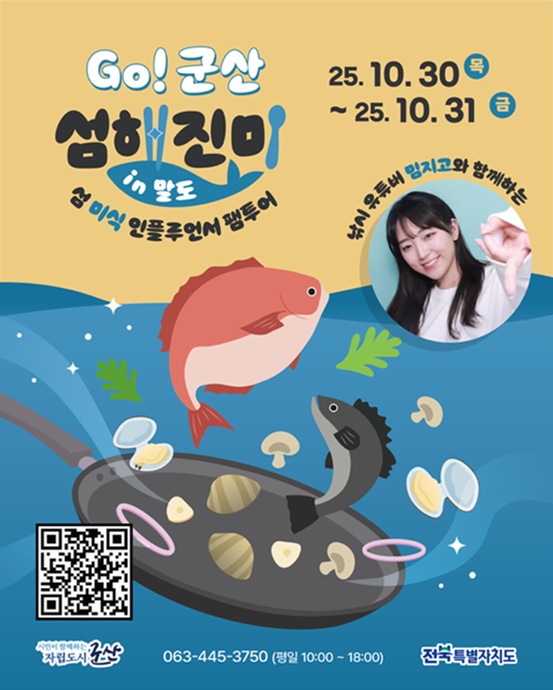 이번 투어는 선착순 사전 모집으로 진행되며 참가 신청은 군산시 공식 사회관계망 계정(페이스북, 인스타그램)에 있는 ‘GO! 군산 섬해진미’ 안내 게시글 QR 부호를 통해 신청할 수 있다.