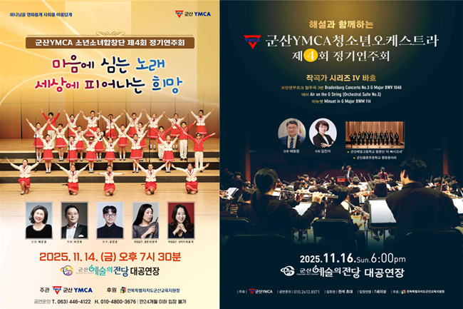 군산YMCA가 주최하는 소년소녀합창단과 청소년오케스트라 제4회 정기연주회가 오는 14일과 16일 군산예술의전당 대공연장에서 잇달아 열린다.