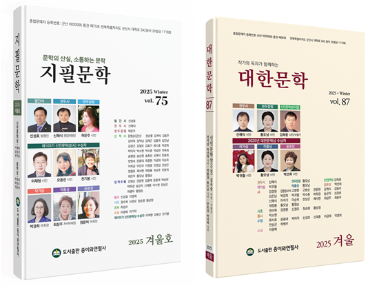 종합문예지 지필문학 통권 제75호 겨울호와 대한문학 통권 제87호 겨울호가 발행됐다.
