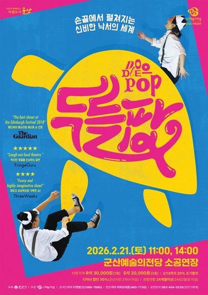 이번 공연은 군산예당 2026년 첫 기획공연으로 오는 21일 소공연장에서 오전 11시, 오후 2시 총 2회 진행된다.