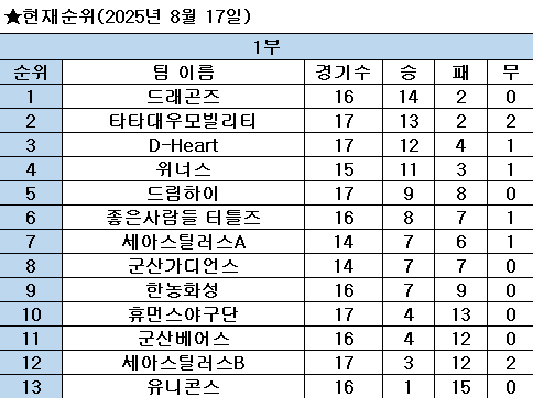 한편, 지난 16일 치러진 군산시장기 2부 4강전은 호형호제가 브라더스를 9대 1, 아이러브카가 나우리를 14대 4로 이기며 결승전에 올랐다.
