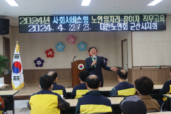 군산시노인회, 노인일자리사업 참여자 교육 실시 (사)대한노인회 군산시지회(지회장 이래범‧이하 군산시노인회)는 노인일자리사업 참여자를 대상으로 사업 운영과 직무이해, 안전․소양․결핵 예방 등 참여자 교육을 실시했다.