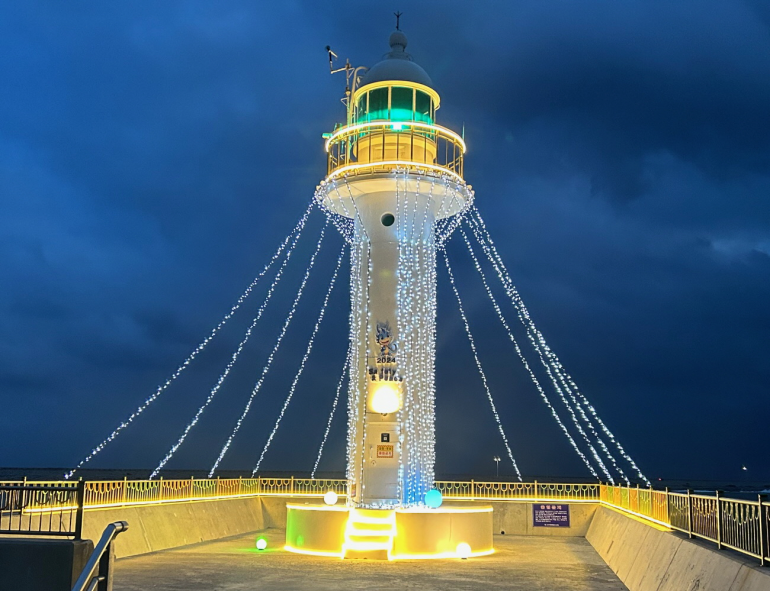등대 트리는 높이 13m, 지름 3m 크기의 반짝이는 LED 조명에 등대의 기초와 난간에는 예쁜 노란색 띠를 두르고, 다가오는 2024년 용의 해 갑진년을 상징하는 청룡과 별 등 다양한 조형물이 함께 조화를 이룬다.
