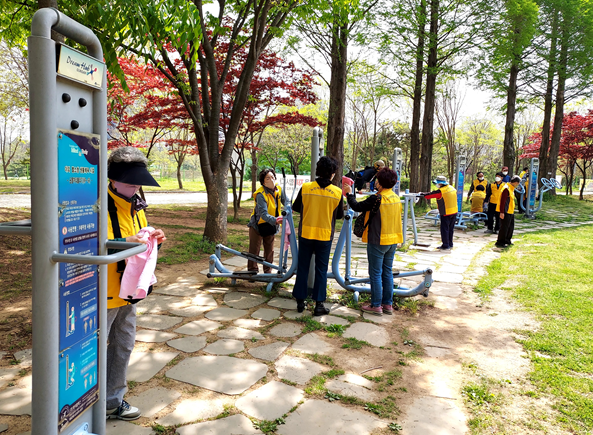 (사)대한노인회 군산시지회(지회장 이래범) 소속 한궁노인자원봉사단(단장 서길촌)이 군산시 경로당 및 지역 주민들이 자주 찾는 운동 공간에서 한궁 운동법과 효과를 홍보하고, 수송공원 일원에서 깨끗한 산책로를 조성하기 위해 잡초 뽑기, 화단 가꾸기, 운동기구 닦기 등 봉사활동을 펼쳤다.