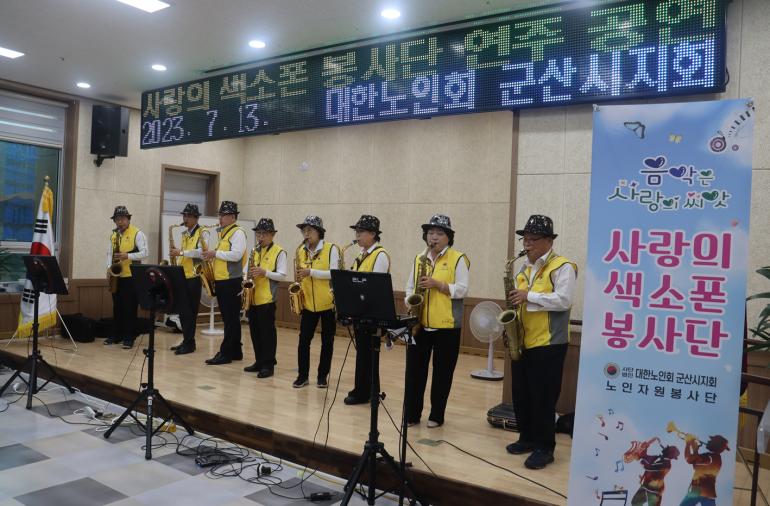 사랑의 색소폰 노인자원봉사단은 군산시 노인회관 2층 음악연습실에서 매일 연습하여 실력향상을 도모하고 있으며, 군산시노인회에서 주최하는 각종 행사에 적극적으로 참여함으로써 소명을 다하고 있다.