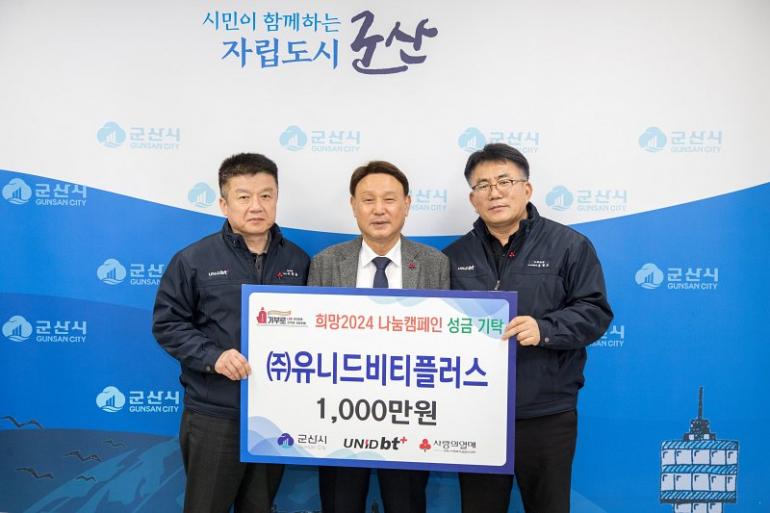 강임준 시장은 “매년 어려운 이웃을 위한 따뜻한 관심과 소중한 성금을 전달해 주시는 유니드비티플러스에 진심으로 감사드리며, 시민이 행복하고 안전한 복지도시 군산을 만들기 위해 더욱 노력하겠다”라고 밝혔다.