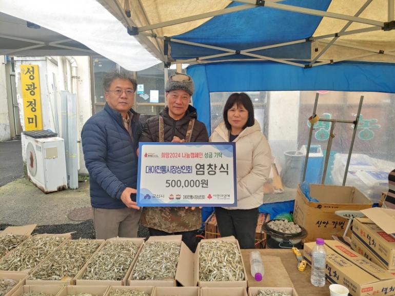 대야전통시장 5일장에서 건어물 노점상을 하는 염창식 씨가 추운 겨울 어려운 이웃을 위해 써달라며 성금 50만원을 군산시에 전해 지역사회를 훈훈하게 만들었다.