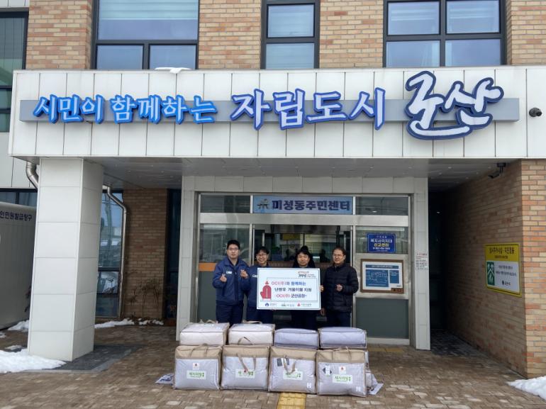 OCI 군산공장 임직원들은 지난 26일 어려운 주민들의 겨울나기를 돕기 위해 난방유와 겨울 이불을 기부했다.