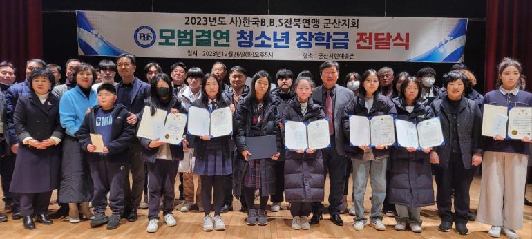 군산경찰서와 BBS 군산지회는 지난 26일 군산시민예술촌에서 모범청소년에 대한 장학행사를 개최했다.