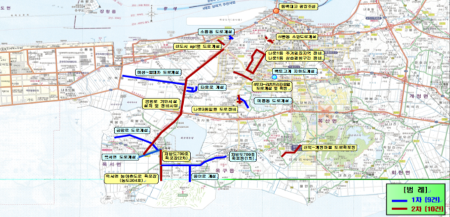 2단계 사업은 2018년부터 2026년까지 총사업비 837억원이 투입되는 사업으로, 현재까지 394억원을 투자해 4토지~리츠프라자호텔 도로개설 및 확장공사, 신덕~개정마을 도로확포장, 옥서(304호)농어촌도로 확장공사, 옥서~옥구간 지방도 709호선 확포장공사, 옥서면 일원 도시가스 공급사업 5건에 대해서 추진하고 있다.