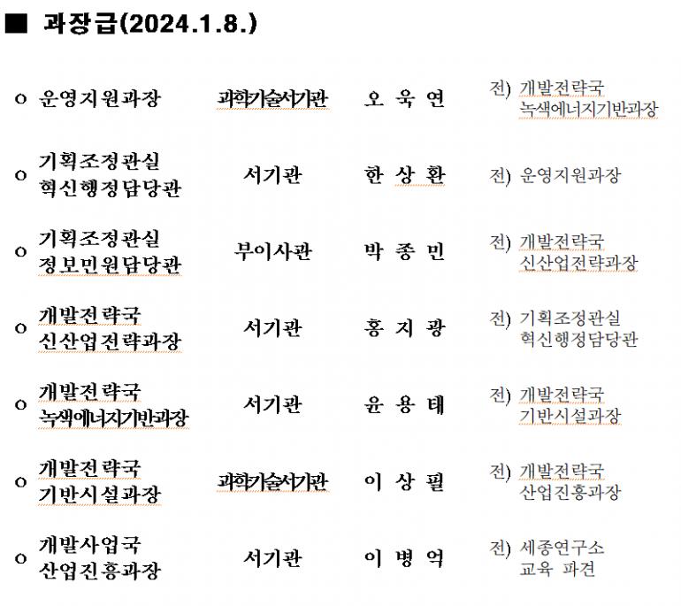 새만금개발청이 1월 8일자 과장급 승진내정자를 발표했다.