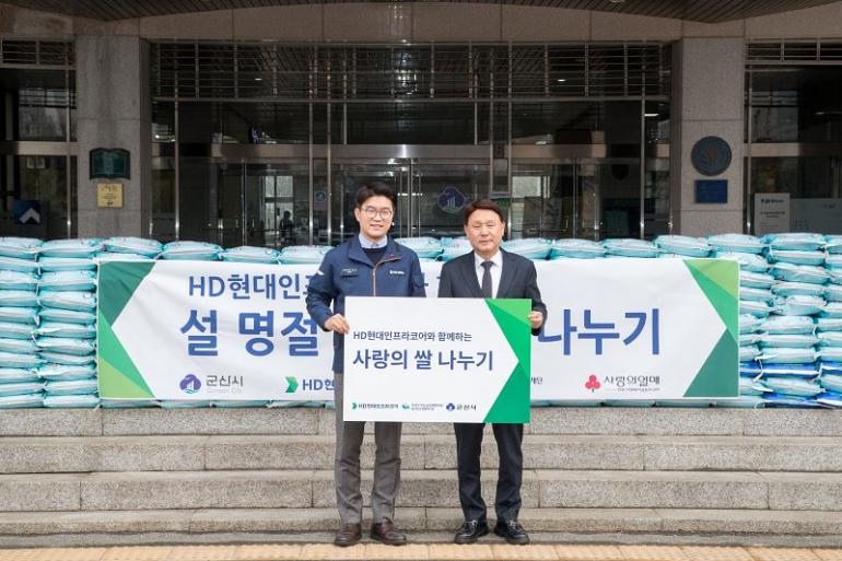 HD현대인프라코어 군산공장은 31일 설 명절을 맞아 사랑의 쌀 나눔(백미 339포‧1,000만원 상당)을 실천했다.
