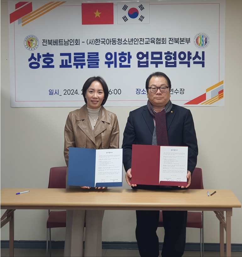 전북지역 안전교육을 선도해오고 있는 안교협 전북본부는 지난 16일 전북베트남인회(회장 김지연)와 베트남인들의 정주 여건 개선 및 교육과 행사 등을 통한 상호 교류를 위해 업무협약을 체결했다.