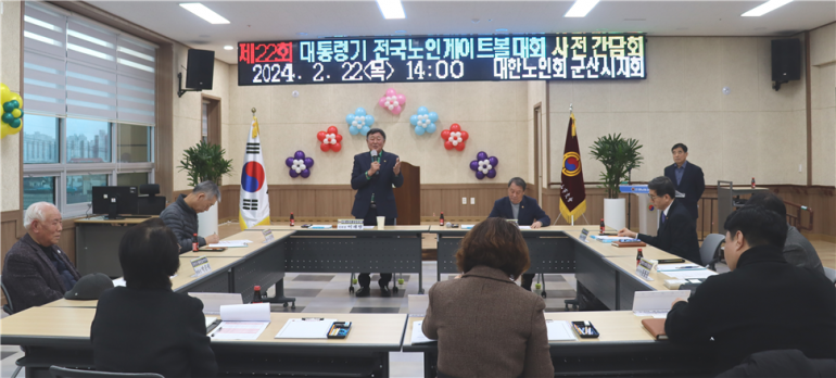 (사)대한노인회 군산시지회(지회장 이래범‧이하 군산시노인회)가 오는 5월 펼쳐지는 ‘제22회 대통령기 전국 노인게이트볼대회(이하 게이트볼대회)’의 성공적 개최를 위한 사전 간담회를 가져 주목을 받았다.