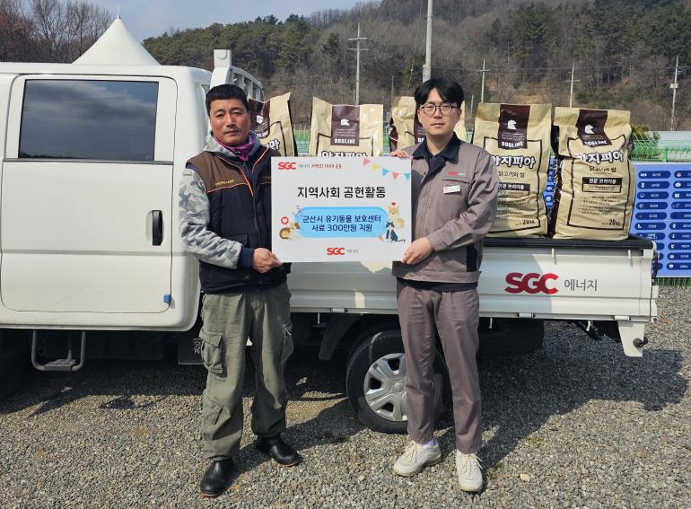 박준영 SGC에너지 부회장은 “동물복지와 지역사회에 더 많은 희망과 사랑을 전하고자 군산유기동물보호센터에 사료를 전달하게 됐다”라면서, “앞으로도 지역사회와 동물복지를 위한 노력을 지속할 것을 약속했다.