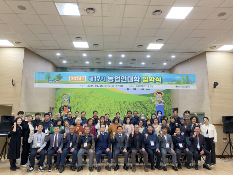 군산시농업기술센터(소장 채왕균)는 25일 군산시농업인대학 모두 2개 과정의 입학생과 관계자 등 60여 명이 참석한 가운데, 농업인회관 강당에서 제17기 입학식을 개최했다.