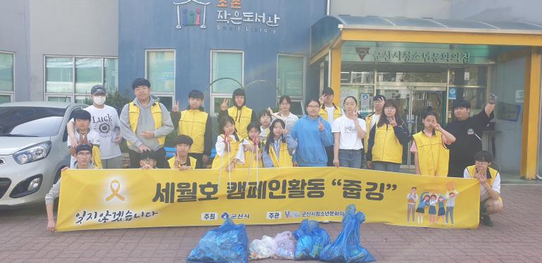 이날 청문집은 세월호 10주기 추모 활동으로 줍깅 활동을 준비했으며, 청문집 청소년동아리연합회가 기획한 줍깅 활동에는 군산기계공업고등학교 4H 동아리의 참여로 20여 명의 청소년이 함께했다.