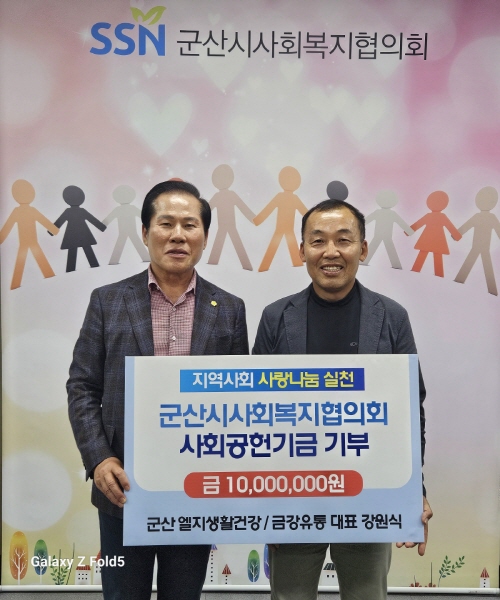 군산시사회복지협의회와 금강유통 군산대리점은 지난 15일 지역사회 사랑나눔 실천 사회공헌기금 전달식을 가졌다.
