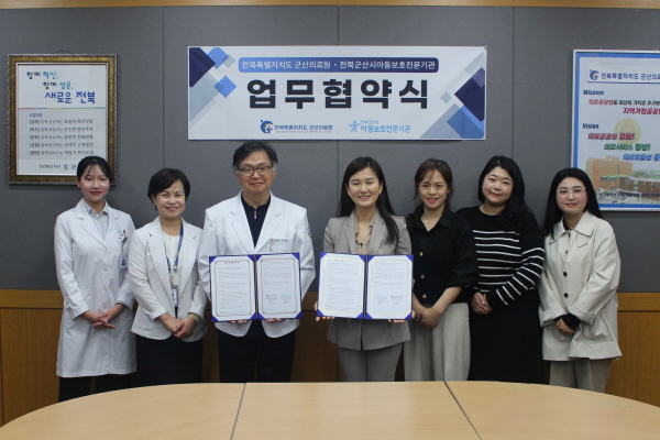 아동전문기관과 군산의료원은 지난 22일 학대 피해 아동 보호와 조기 개입 발굴을 위한 업무 협약을 체결했다.