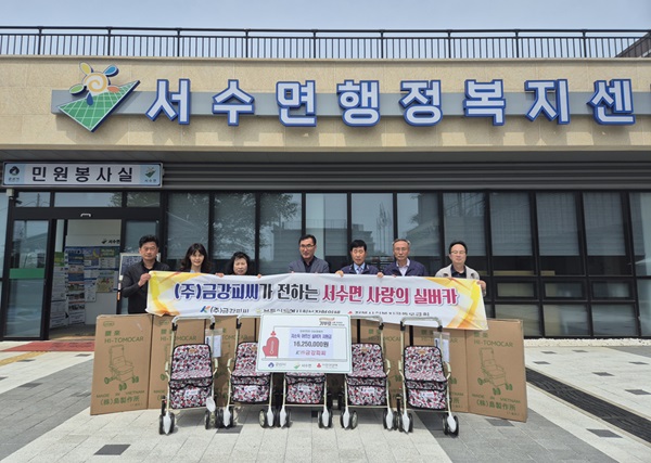 ㈜금강피씨가 5월 가정의 달을 맞아 거동이 불편한 저소득 노인을 위해 실버카(보행보조기)지원금 1,625만원을 30일 서수면에 전달했다.