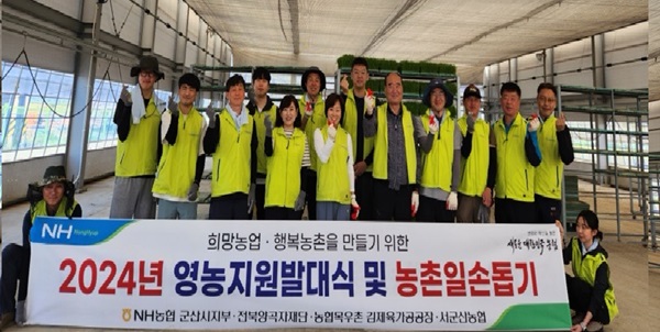 NH농협 군산시지부(지부장 원천연)는 본격적인 영농철을 맞아 풍년농사 기원을 위한 영농지원 발대식과 농촌일손돕기를 실시했다.