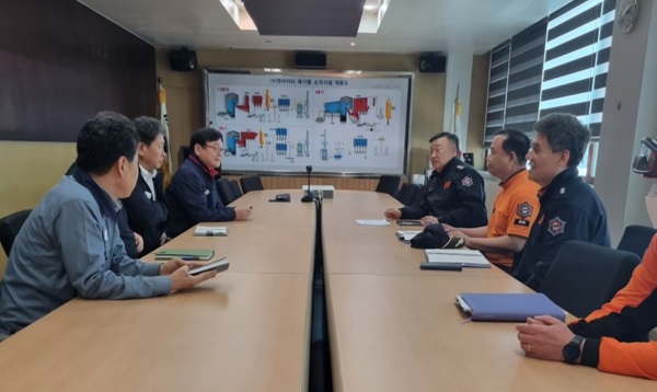 주요 내용은 ▲자원순환시설 합동소방점검 등에 관한 사항 협의 ▲보관·적치 폐기물 화재 시 환경오염 방제 등 조치방법 협의 ▲연소확대 방지를 위한 폐기물시설 화재예방조치 안내 등이다.