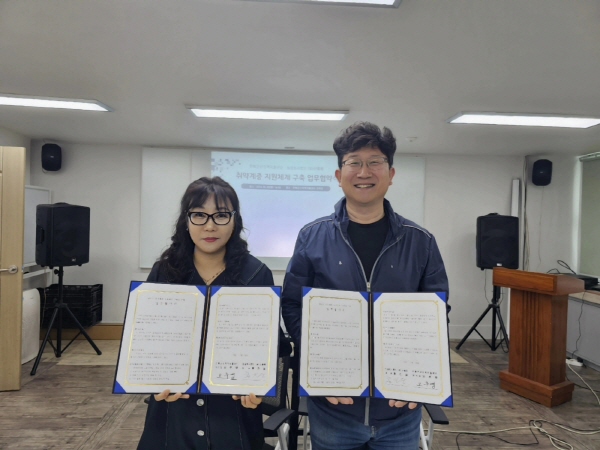 군산지역자활센터(센터장 오주영)와 농업회사법인 (유)산돌팜(대표 홍진웅)이 지난 28일 관내 취약계층의 지원체계 구축을 위한 업무협약을 체결했다.
