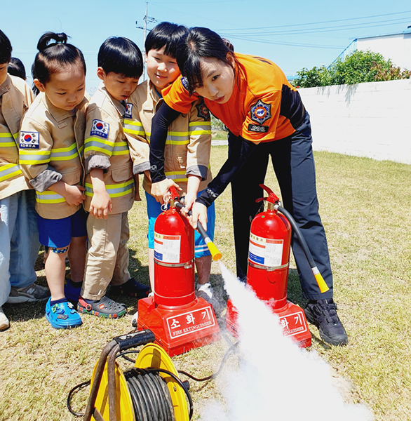 이번 교육에서는 ▲화재 발생 시 대피요령 교육 ▲방화복 착용 체험 ▲아이들이 흥미를 가질 수 있도록 연기 소화기를 이용한 소화기 사용법 등을 설명했다.