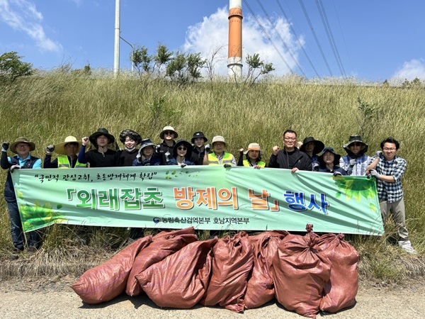 농림축산검역본부 호남지역본부(지역본부장 이은섭‧이하 검역본부)는 지난 4일 군산항일원에서 서양가시엉겅퀴 등 외래 잡초를 제거하는 민‧관‧학 합동 행사를 실시했다.