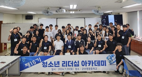 군산청년회의소(회장 김성현)가 주관한 ‘2024년 제15기 청소년 리더십 아카데미’가 지난 20일 군산 영광중학교에서 열렸다.