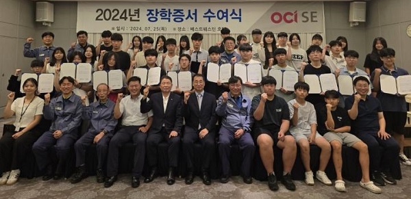 이번 장학금 전달은 2016년부터 매년 이어진 장학사업의 일환으로 OCI SE는 9년간 약 730명의 학생에게 9억여원의 장학금을 지원했다.