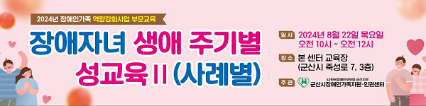 군산시 장애인가족지원인권센터에서는 장애자녀의 행복한 미래 준비를 위한 평생설계 교육을 장애자녀를 둔 부모 대상으로 ‘장애자녀 생애주기별 성교육Ⅱ(사례별)’을 실시한다.