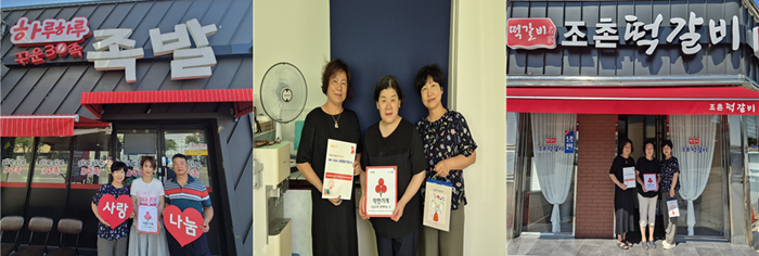 조촌동 조경한마음지역사회보장협의체(민간위원장 황순정)는 지난 7일 조촌동 착한가게에 동참한 하루하루30족발(대표 정선미), 조은식품(대표 윤미란), 조촌떡갈비(대표 김희옥)를 방문해 착한가게 현판을 전달했다.