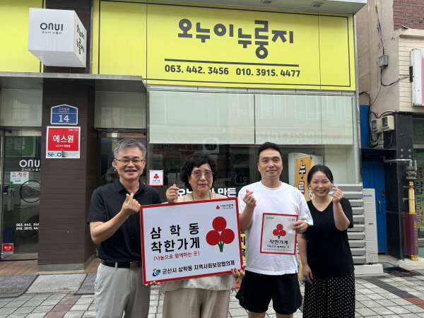 삼학동 지역사회보장협의체는 지난 20일 오누이누룽지(대표 박병순)에 착한가게 인증현판을 전달했다.