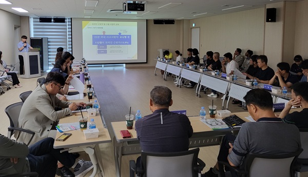 군산시가 23일 외국인근로자 및 사업주를 대상으로 찾아가는 현장 교육과 간담회를 군산 산업단지 복합문화센터에서 개최했다.