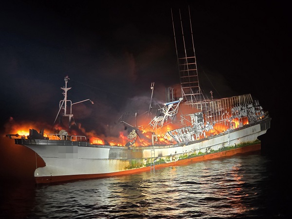 군산해양경찰서는 지난 24일 오후 11시 59분경 어청도 남서쪽 약 141km 해상에서 조업중이던 어선 A호(86톤, 근해장어통발, 승선원 12명)에 화재가 발생했다는 신고를 접수하고 경비함정 등 가용세력을 현장으로 급파해 화재 선박 구조와 진압에 총력을 기울였다.