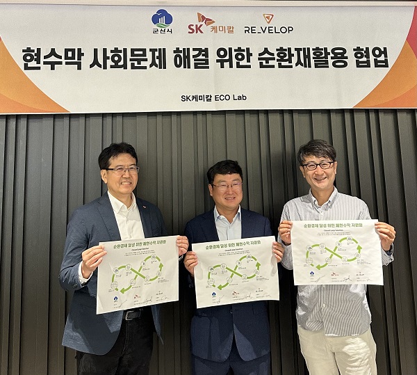 신원식 군산시 부시장은 “국내에서 유일하게 화학적 재활용 상업화를 구축하고 있는 SK케미칼과의 협력을 통해 폐현수막이 지속가능한 자원으로 재활용 될 것으로 기대한다”며 “폐현수막뿐 아니라 관내에서 발생하는 폐기물 문제 해결을 이해 SK케미칼과 다양한 고민을 함께 할 것이다”고 밝혔다.
