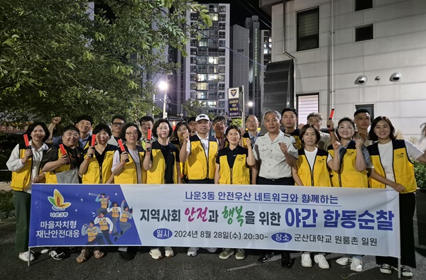 나운3동 행정복지센터는 지난 28일 군산대학교 2학기 개강 시기에 맞춰 안전우산네트워크 관계기관과 합동으로 야간 방범활동을 진행했다.