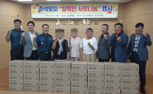 군산경찰서(서장 김현익)와 군산원예농협(조합장 고계곤)이 민족 대명절 추석을 맞아 북한이탈주민들을 위한 사랑 나눔을 실천했다.