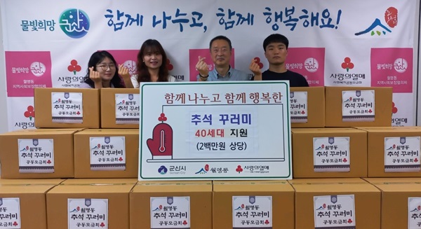 월명동 행정복지센터(동장 김영효)는 10일 관내 저소득 취약층 40가구를 위한 ‘추석 꾸러미 나눔’ 행사를 가졌다.