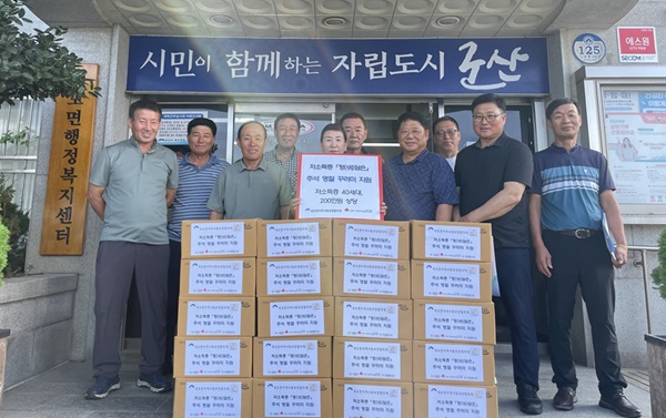 이번에 선물하는 추석 꾸러미는 송편, 오색한과, 햇과일(사과‧배 등)과 군산 특산품 울외짱아찌 등 5만원 상당의 식료품과 과일로 구성됐다.