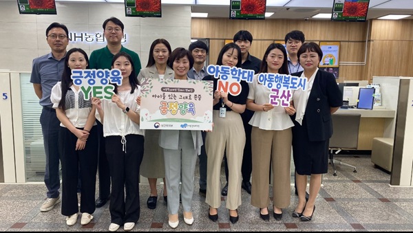 NH농협 군산시지부(지부장 원천연) 임직원이 11일 아동학대를 예방하는 ‘긍정양육’ 캠페인에 동참했다.